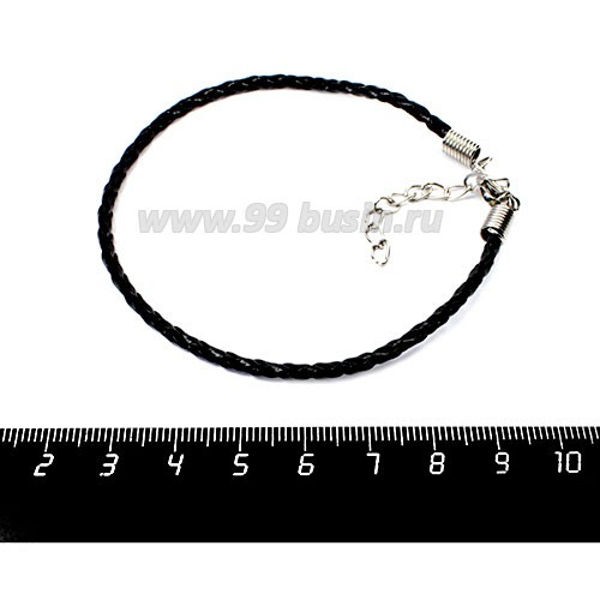 Основа для браслета, искусственная кожа, ПЛЕТЕНЫЙ, 20 см (+5 см удлинительная цепочка), черный, 1 штука