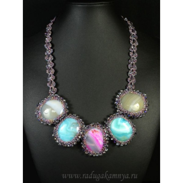 Колье ручной работы с агатом тонированным цвет ассорти, 54см