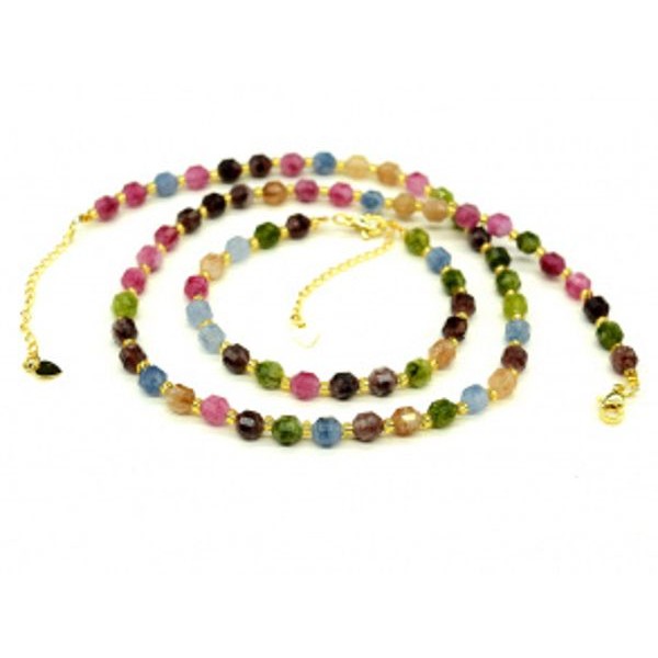 • Комплект: бусы, браслет из кальцита граненые 5*6мм цвет  ассорти, 45см, 17см