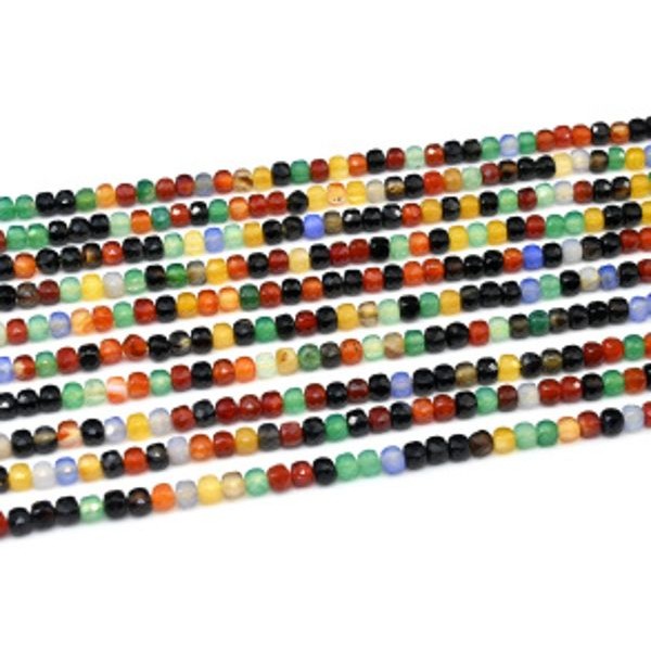 Бусины из агата тонированного кубик гр.4,5мм цвет ассорти, 39см, 90 бусин