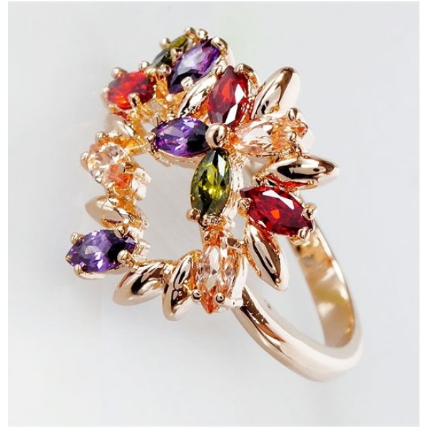 • Кольцо с фианитом микс "камелия"