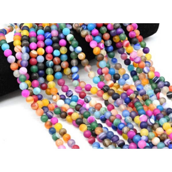 Бусины из агата тонированного шарик 8мм цв.ассорти матовый, 38см, 47 бусин