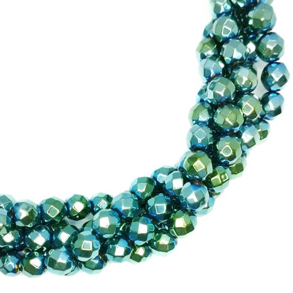 Натуральный камень ГЕМАТИТ бусины круглые граненые 6 мм, цвет зелено-голубой мультиколор, около 40 см/нить