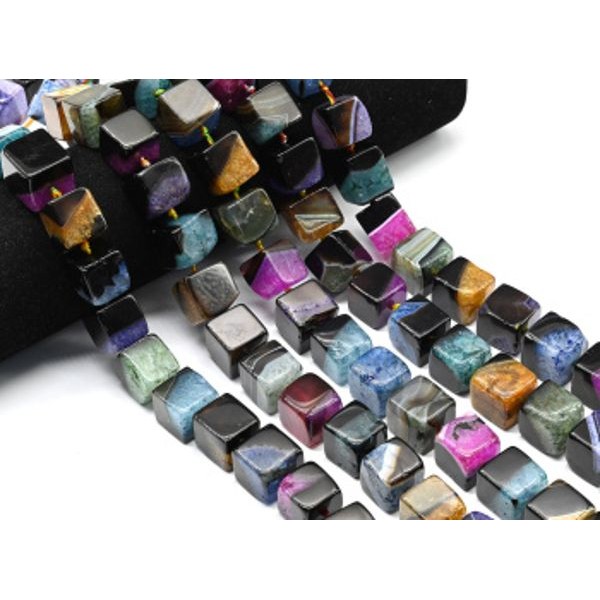 Бусины из агата тонированного кубик 15мм, цвет ассорти, 41см, 20 бусин