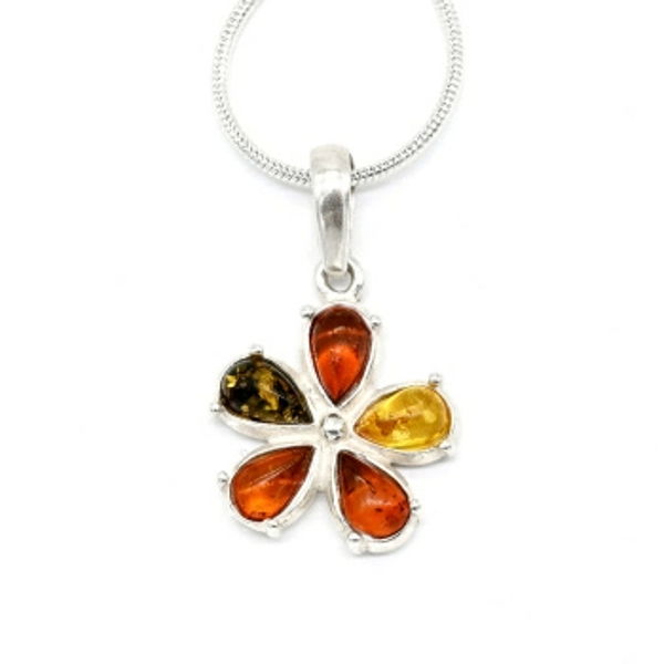 • Кулон с янтарём в посеребрении Цветочек 16мм цвет ассорти