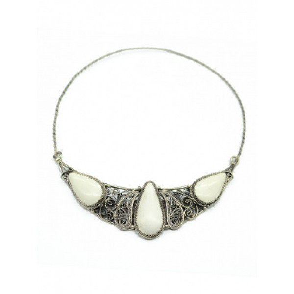 Брошь из каулита (имит. кахолонга) "вензель", основа 70х2.4мм, овал 18х13мм, подвеска горный хрусталь
