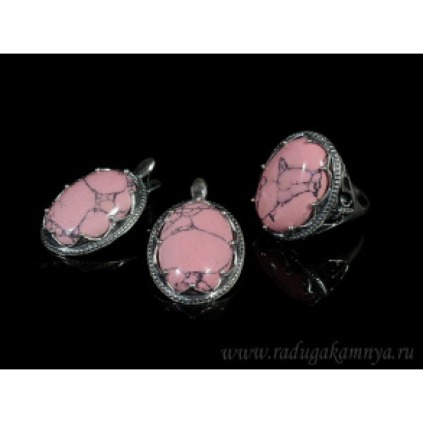 Кольцо и серьги с кахолонгом (имитация), цвет розовый