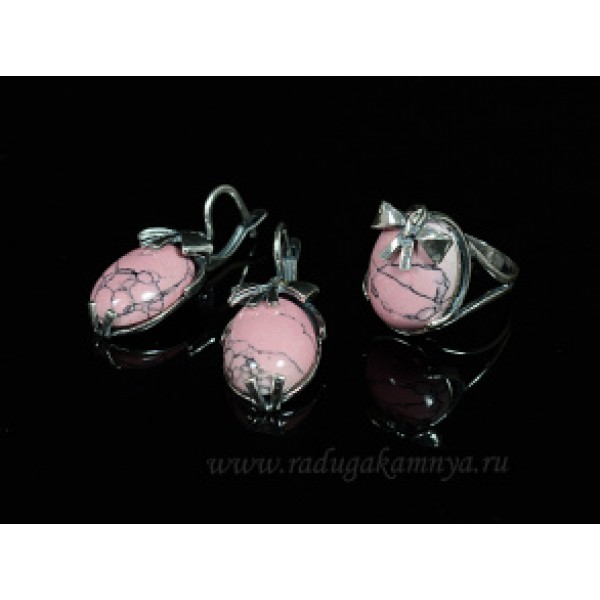 Кольцо и серьги с кахолонгом (имитация), цвет розовый