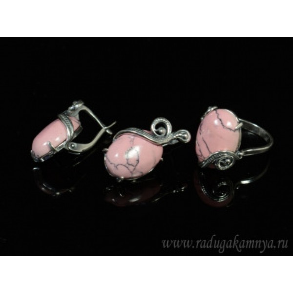 Кольцо и серьги с кахолонгом (имитация), цвет розовый
