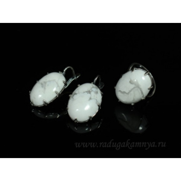 Кольцо и серьги с кахолонгом