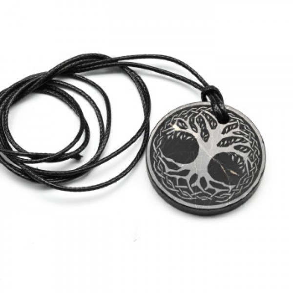 Кулон из шунгита круг "Дерево жизни" 30мм, полированный