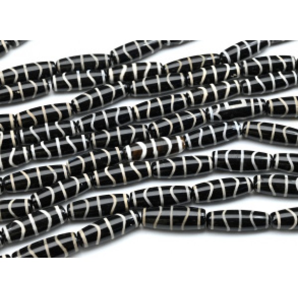 Бусины Дзи "Дерево Бодхи" из агата бочонок 10*30мм, цв.черно-белый, 36см, 10 бусин