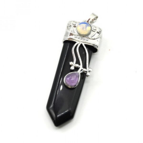 Заколка-шпилька из агата черного и обсидиана снежн..