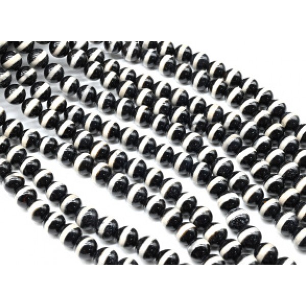 Бусины Дзи "Дерево Бодхи" из агата бочонок 10*30мм, цв.черно-белый, 36см, 10 бусин