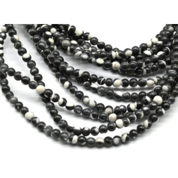 Бусины Дзи "Дерево Бодхи" из агата бочонок 10*30мм, цв.черно-белый, 36см, 10 бусин