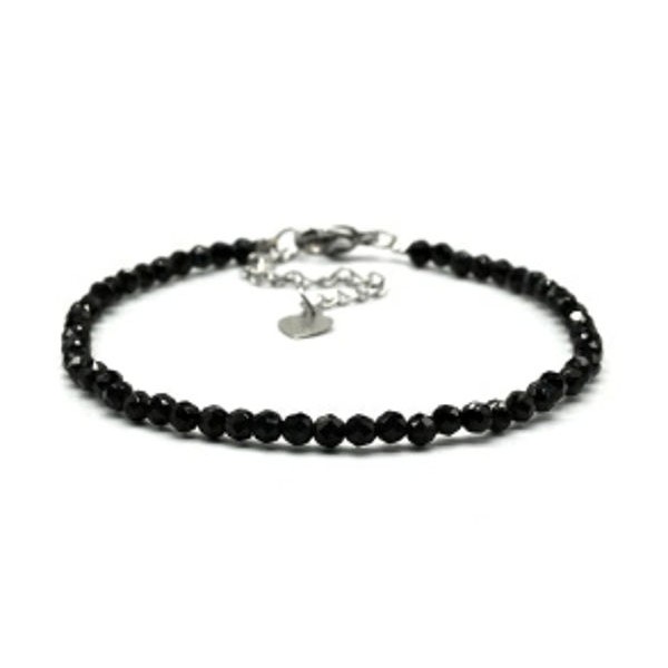 • Браслет из циркона шарик гр.3мм цвет черный, 17см (иск.)
