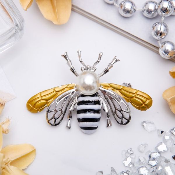 • Брошь "Пчела" крупная, цвет черно-белый, цвет серебристый (пластик, эмаль)