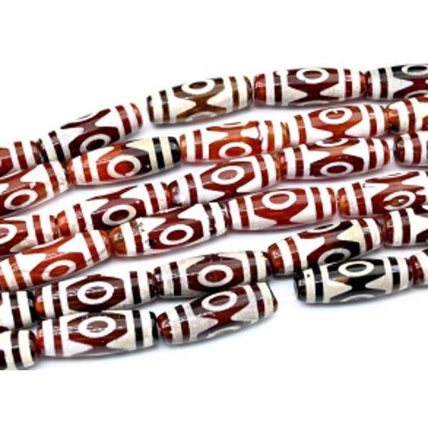 Бусины Дзи "Три глаза" из агата бочонок 10*30мм, цвет красно-белый, 29см, 10 бусин