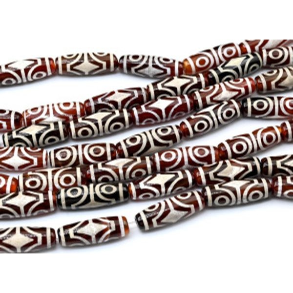 • Бусины Дзи "Четыре глаза" из агата бочонок 10*30мм, цвет вишневый, 29см, 10 бусин