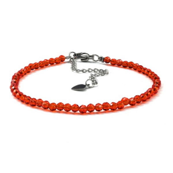 • Браслет из циркона шарик гр.3мм цвет алый, 17см (иск.)