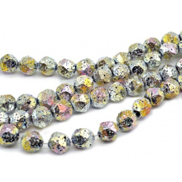 Бусины из лавы шарик с гранями 12мм цвет хамелеон золотистый, 38,5см, 32 бусины