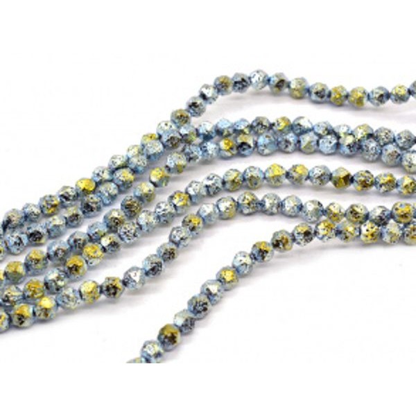 Бусины из лавы шарик с гранями 6мм цвет золотисто-зеленый, 38,5см, 63 бусины