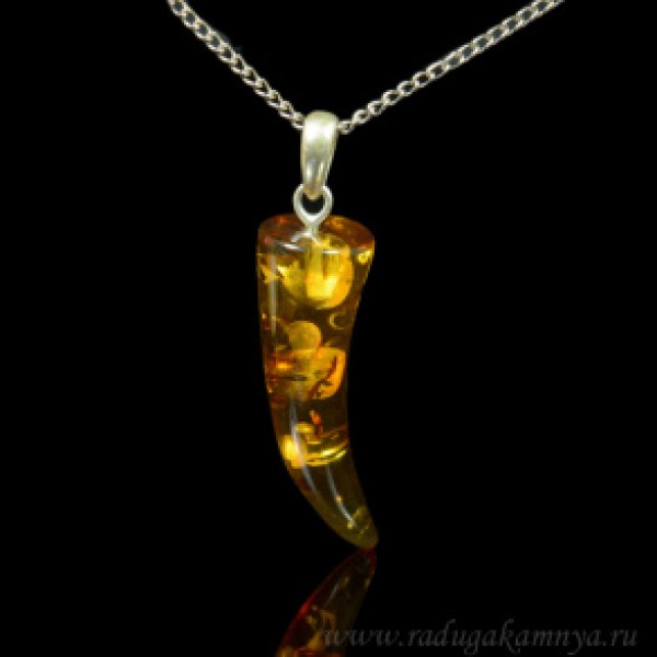 Кулон из янтаря с посеребрением "клык" 13*40мм коньячный (иск.)