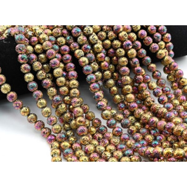 • Бусины из лавы шарик 8мм цвет хамелеон золотистый, 39см, 46 бусин