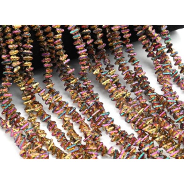 Бусины из лавы треугольник 7*6, цвет хамелеон золотистый, 39см, 100 бусин