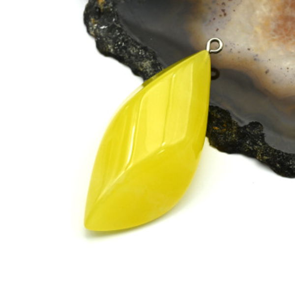 Кулон из янтаря рис с гранями 22*47мм цвет медово-молочный (иск.)
