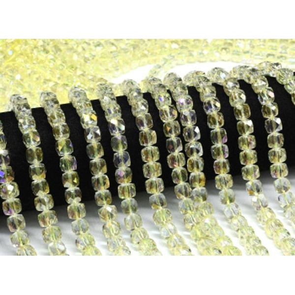 Бусины из чешского стекла кубик гр.8мм цвет лимонный, 39см, 49 бусин (иск.)