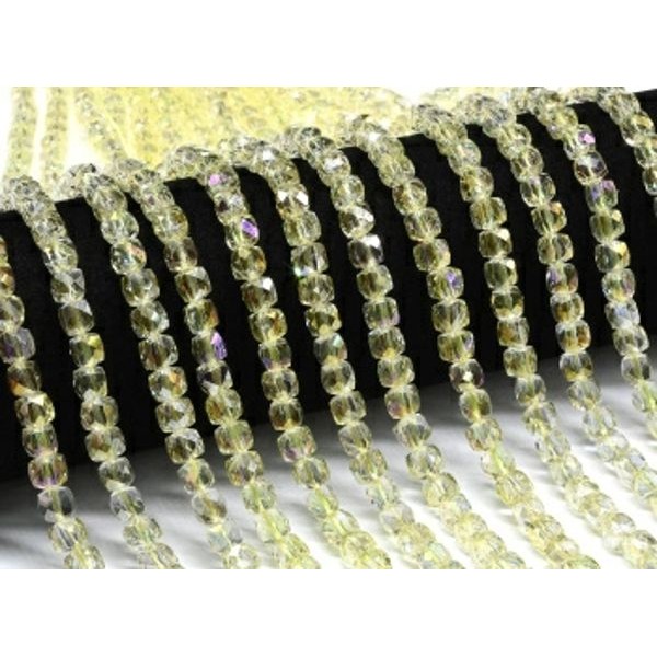 Бусины из чешского стекла кубик гр.6мм цвет лимонный, 40см, 60 бусин (иск.)