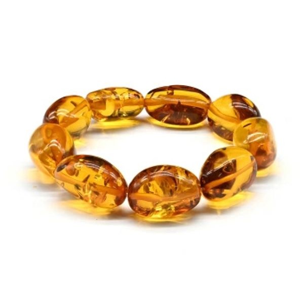 Браслет крупный из янтаря галтовка 15*25мм цвет медовый, 18см (иск.)