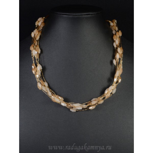 • Колье 8 нитей с цирконом цвет кремовый, 42см