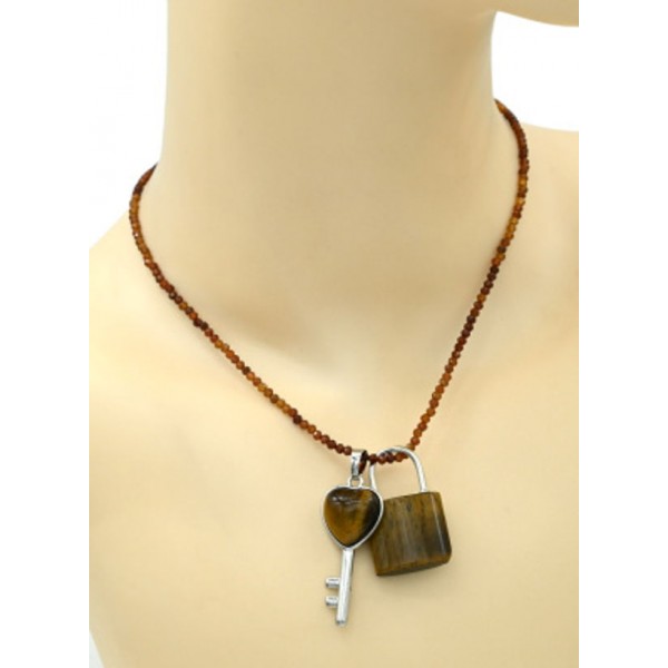 Парная Кулон Ключ - Замок 17*38мм, 20*32мм с тигровым глазом