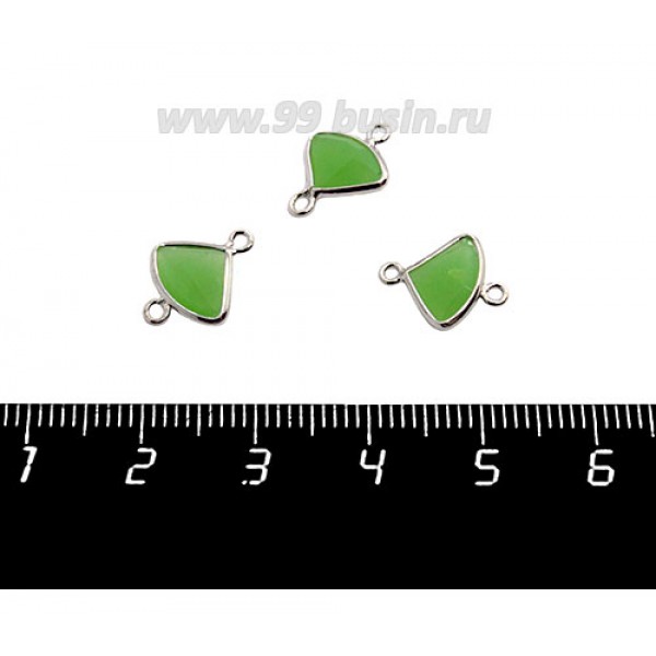 Коннектор Премиум Бриллиант мини 13*10 мм ювелирное стекло, зеленый полупрозрачный/платина 1 штука