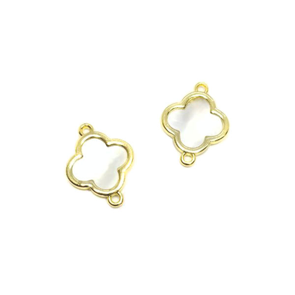 • Коннектор Премиум Четырехлистник с перламутром 18,5*14, цвет золото 1 штука