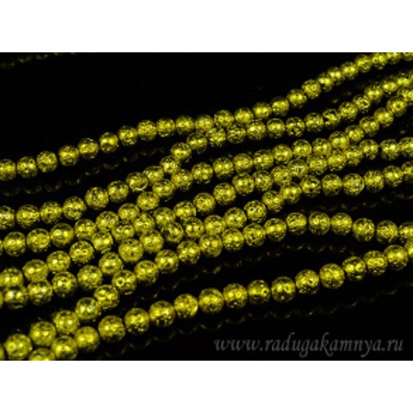 Бусины из лавы шарик 6мм цвет салатовый, 39см, 61 бусина.