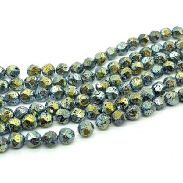 Бусины из лавы шарик с гранями 12мм цвет золотисто-зеленый, 37,5см, 31 бусина