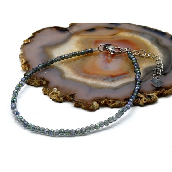 Браслет на ногу из циркона шарик гр.3мм цвет зеленый хамелеон, 21см (иск.)