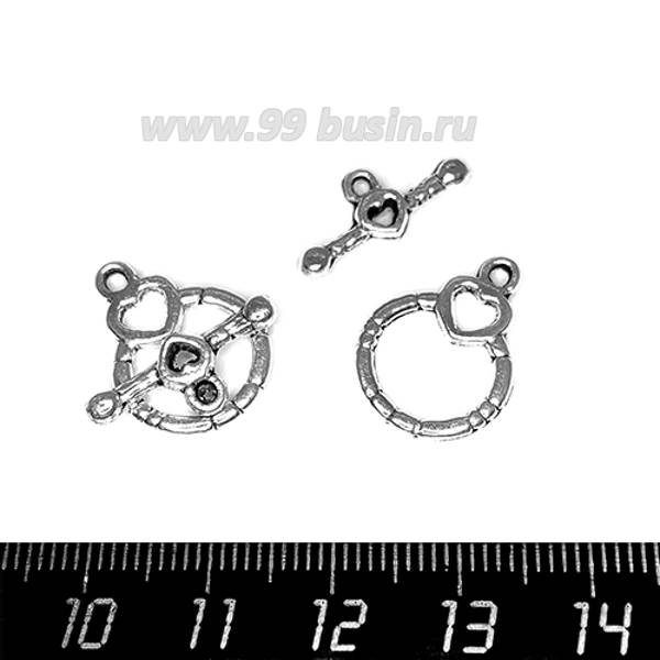 Застёжка - Тогл Кольцо с сердцем, цвет старое серебро 18,5*14, 18*8 мм 3 набора/упак