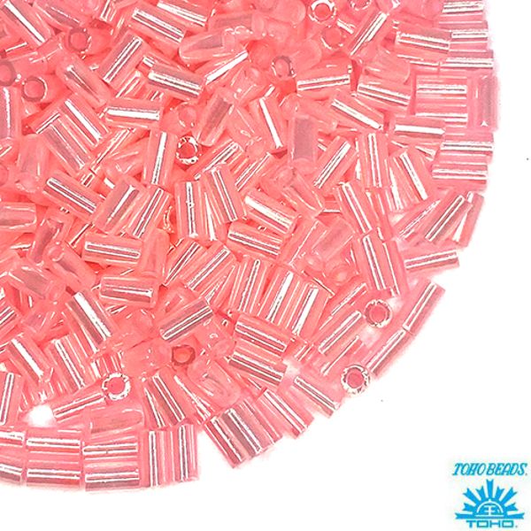 Стеклярус TOHO BUGLE 3 мм № 145 прозрачный, светло-розовое отверстие/перламутр 5 граммов Япония