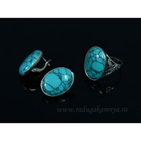 Кольцо и серьги с бирюзой (имитация) .