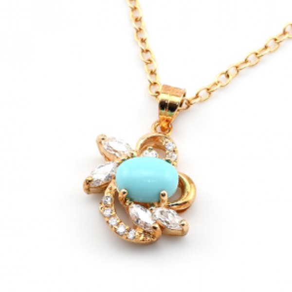 Кулон позолота с бирюзой (имитация) и стразами (иск.)
