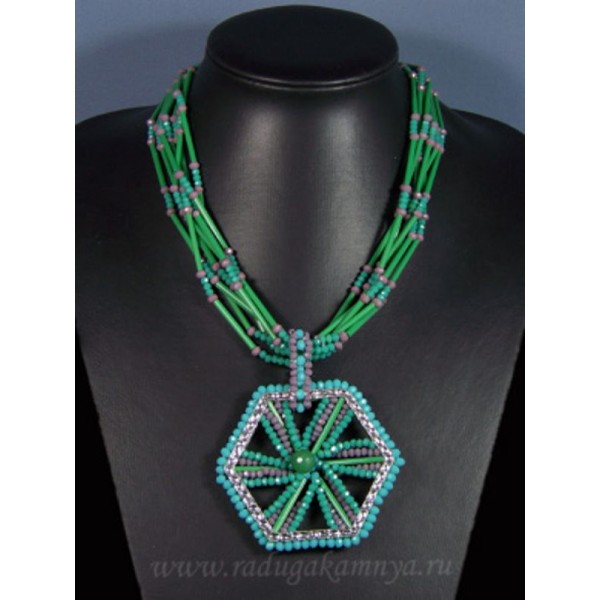 • Бусы с подвеской из циркона и чешским стеклом 7нитей шестиугольник 70*70мм цвет зеленый,голубой, 47см