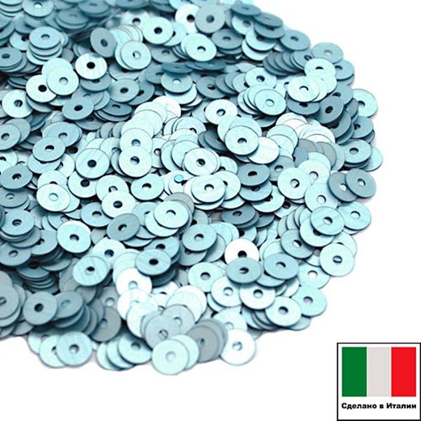 Пайетки 4 мм Италия плоские цвет 606W Azzurro Satinato (матовый голубой) 3 грамма (ок. 900 штук)