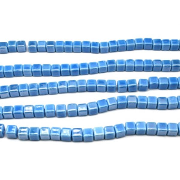 Бусины из муранского стекла кубик 8*8мм, цвет лазурный, 30см, 32 бусины