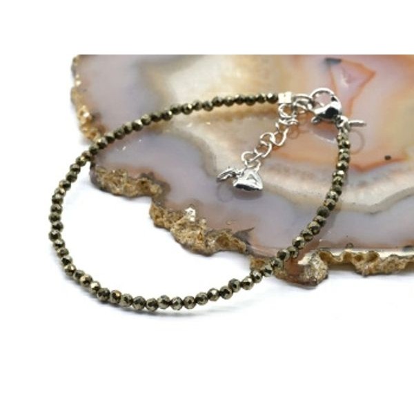 Браслет из гематита шарик гр.2мм цвет золотистый, 17см