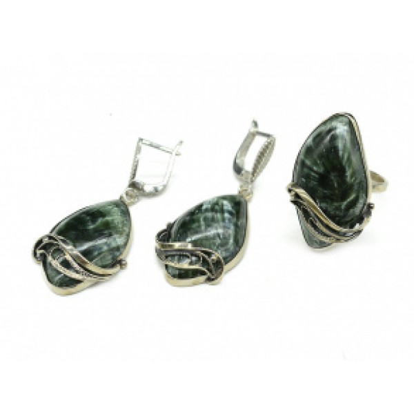 Кольцо и серьги серафинит