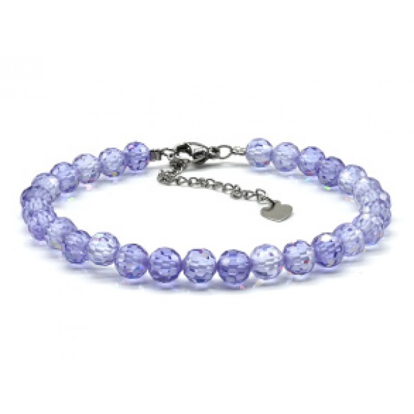 Браслет из фианитов шарик гр.6мм цвет лавандовый, 18см (иск.)
